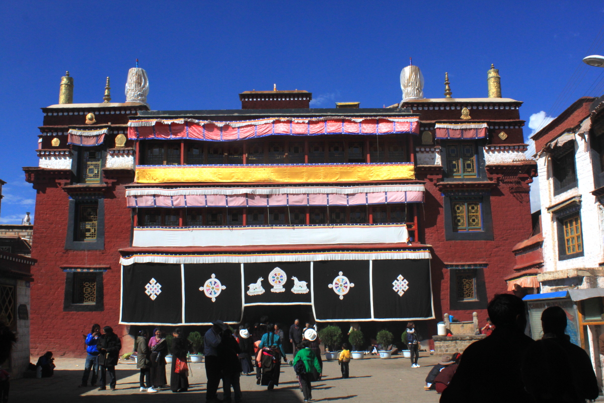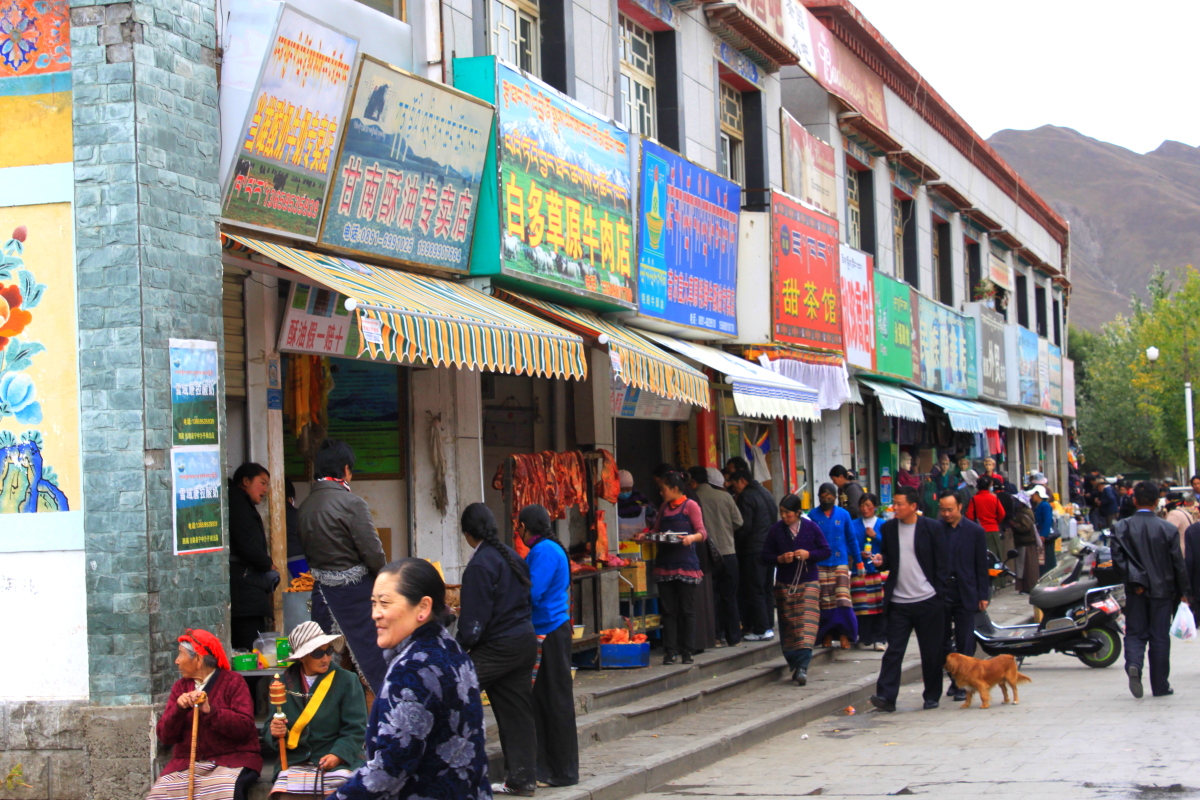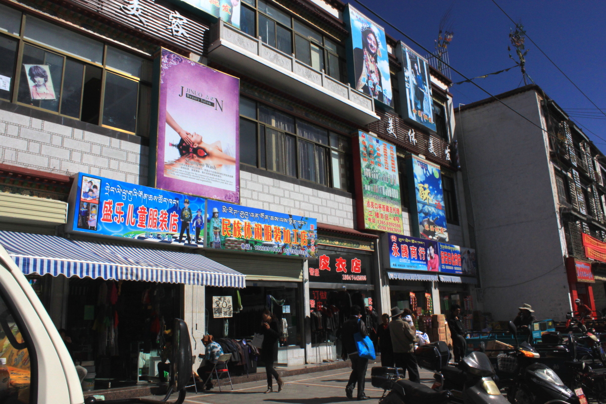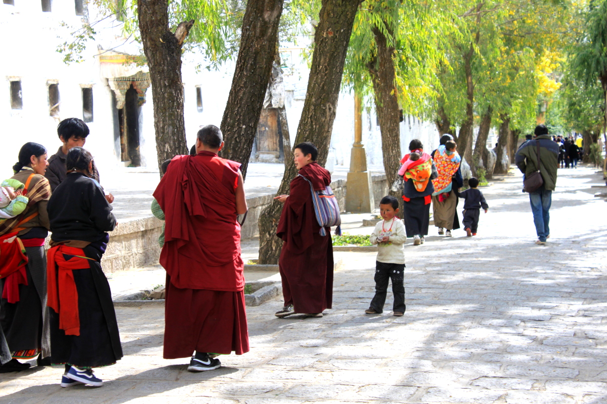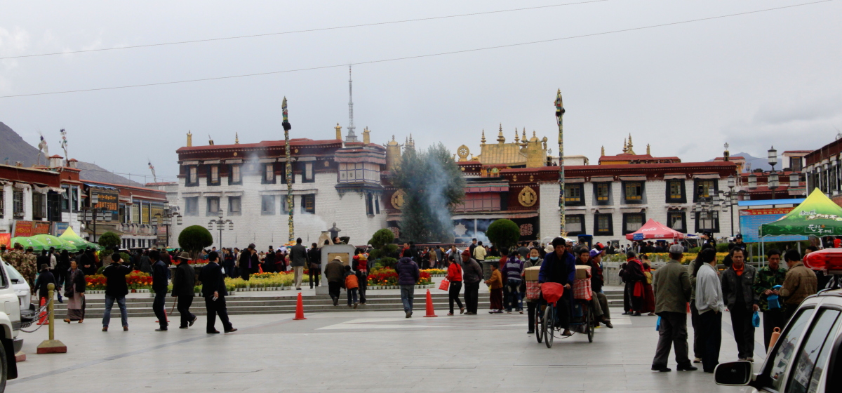 - Approaching the Jokhang Monastery in downtown Lhasa
