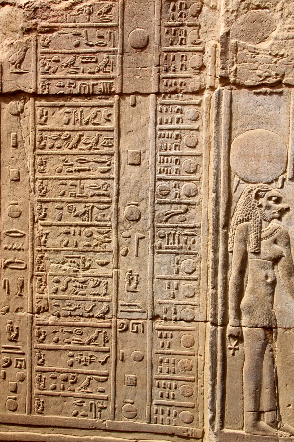 An example of the carvings on the columns, the crocodile god Sobek.