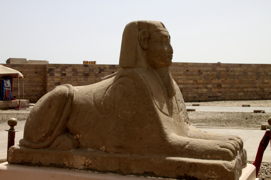 A Sphinx Statue by the entrance to the temple complex.