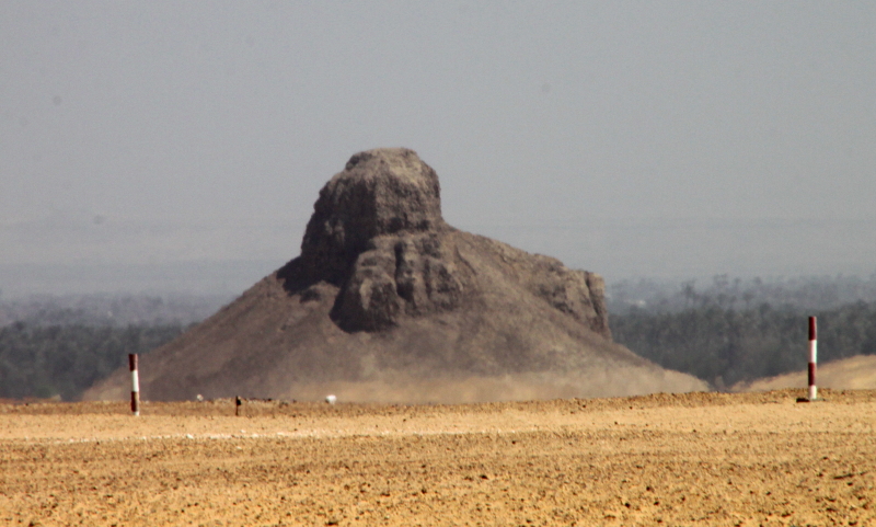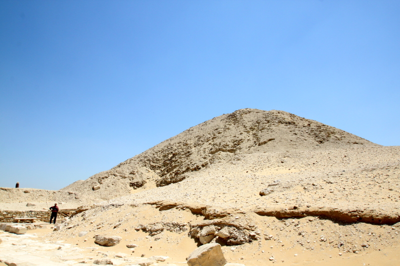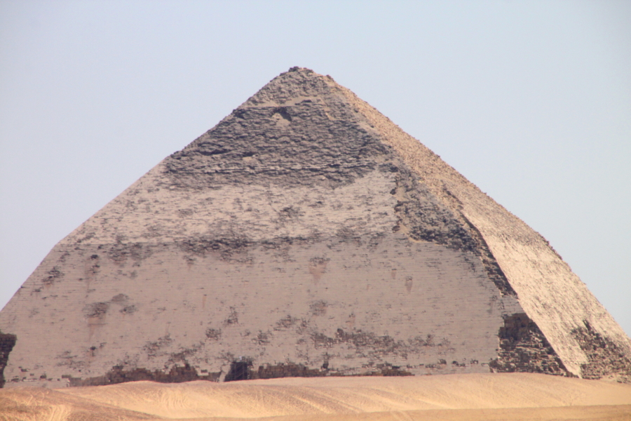 It is believed that evidence another pyramid was starting to collapse made the builders change their over-ambitious plan and reduce the angle of this pyramid halfway through its construction.