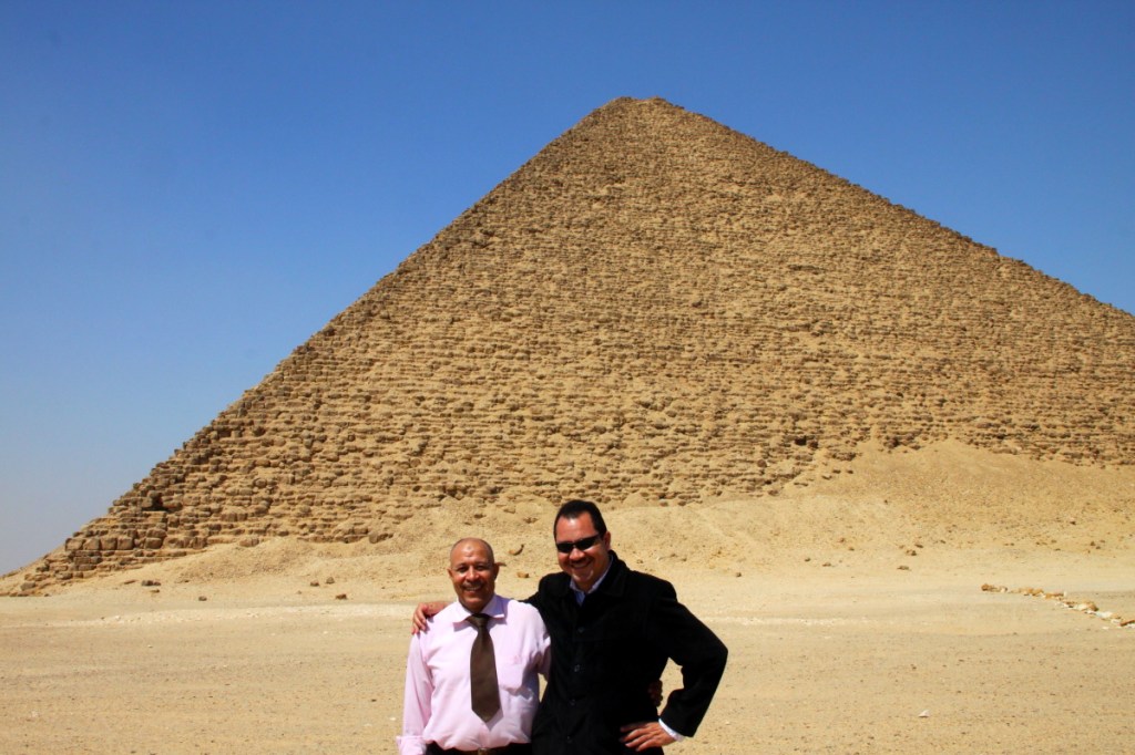 Here’s our fantastic guide and tour organizer, Ahmed Hamed Yousif, once again; he’s posing with our driver, the friendly Mr. Mohammed, at the back side of the Red Pyramid.