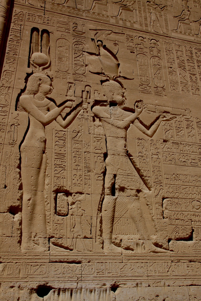 Wall carving – birth story carving, the pharoah as a child fed by a goddess.
