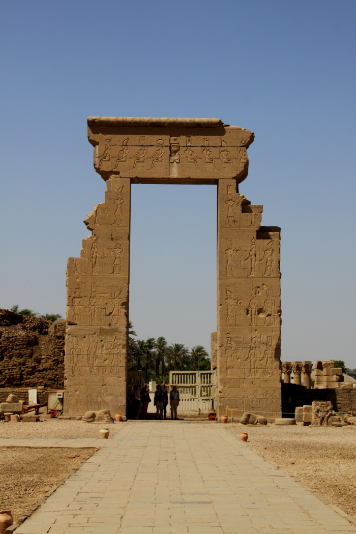 The front of the Abydos Temple, looking up into and through the ruins of the courtyard.