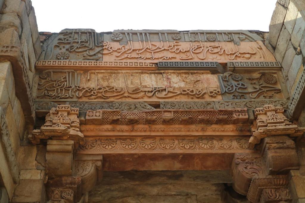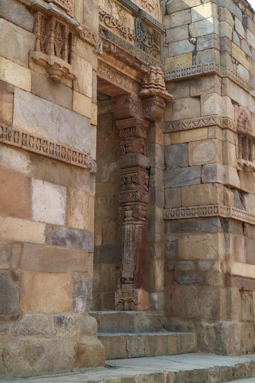 Many of the ornate decorations of flowers and other patterns are Hindu, and the style is visibly old Hindu – because the stonework was stolen (“repurposed”?) from previous Hindu temples by the new rulers.