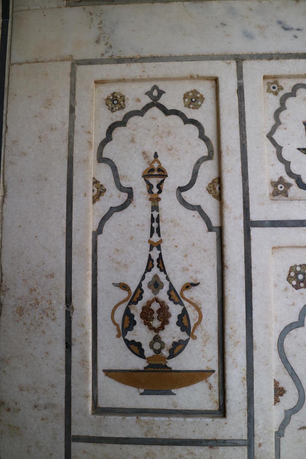The wine bottle motif figures prominently in the decorations – supposedly Nur’s father was a drunk and she supervised building this tomb, and wanted everyone to remember his weakness for wine.